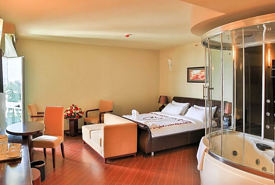 This double room features a hot tub. Featuring free toiletries and bathrobes, this double room includes a private bathroom with a bath, a shower and a bidet. The spacious air-conditioned double room features a flat-screen TV with satellite channels, a private entrance, soundproof walls, a mini-bar as well as mountain views. The unit has 1 bed.